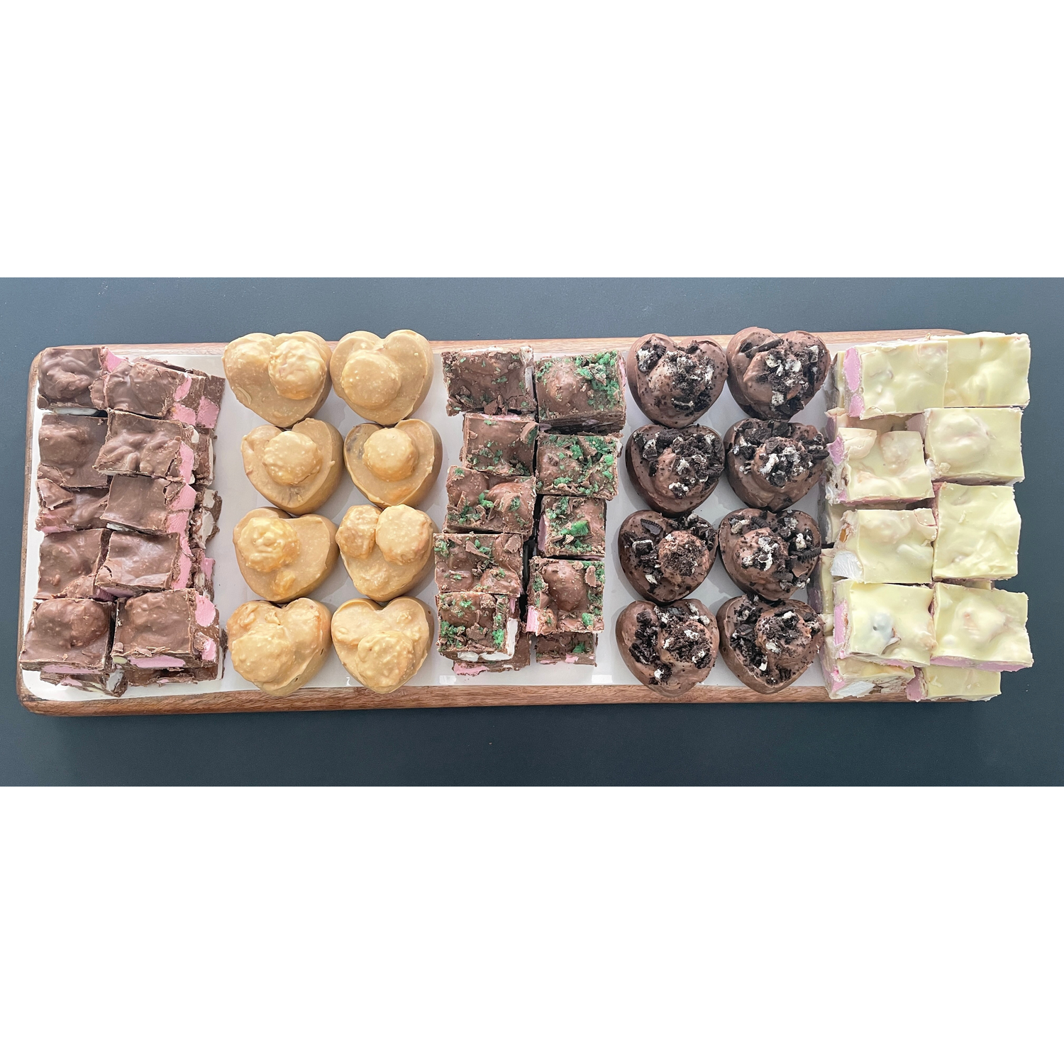 All Rocky Road Products are handmade and therefore will always be different in appearance, that is the beauty of Rocky Road. The creation of the rocks and all the ingredients that form the road... have different textures, colours and shapes, but the same flavour in each creation is guaranteed!